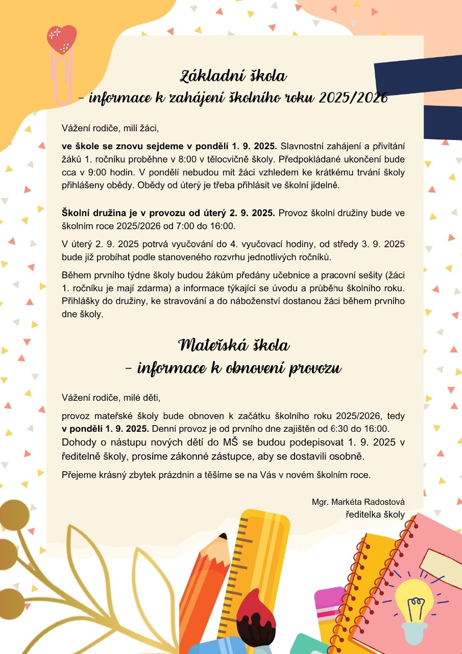 Nový školní rok začíná v pondělí 2. 9. 2024.